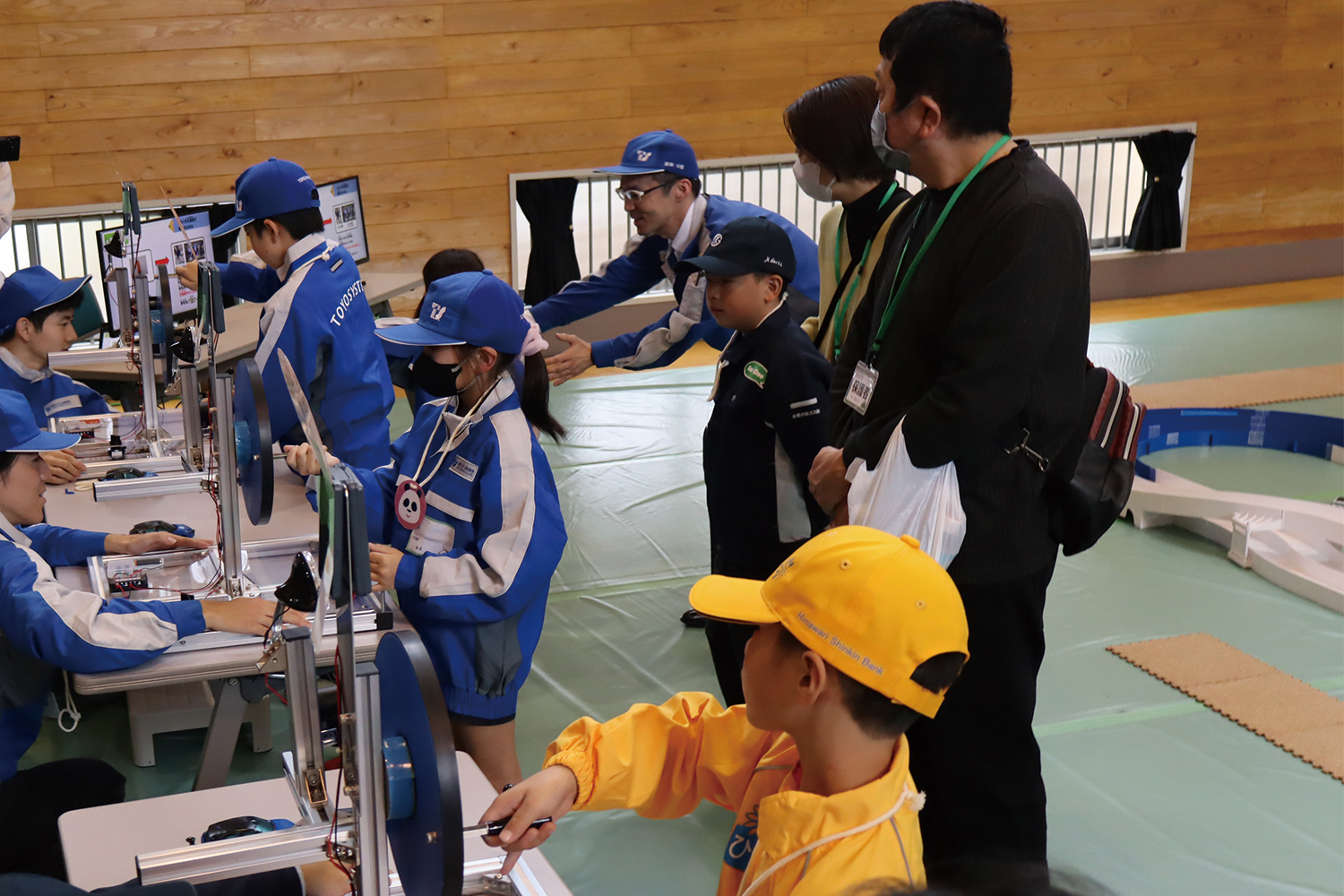 子どもたちが自分で組み立てた燃料電池をMIRAIのミニカーに乗せて走らせるコンテンツでは、慣れない工具に苦労しながらも、燃料電池が組みあがる工程に楽しそうに挑戦してくれました。