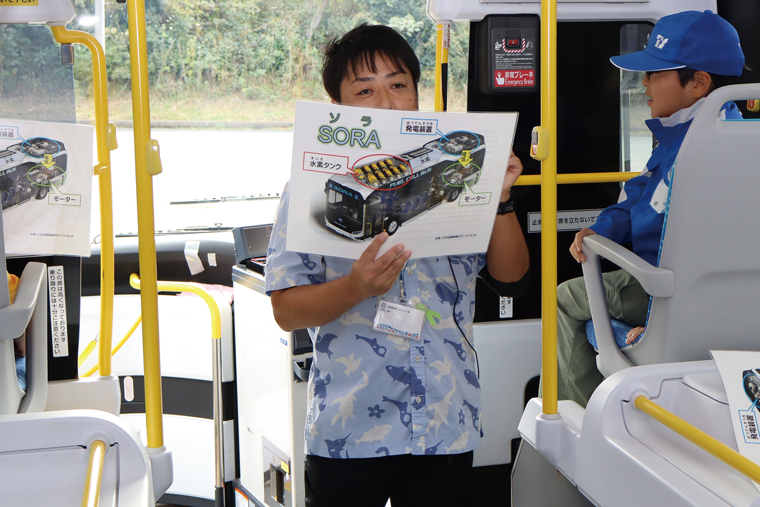 身近な働く燃料電池自動車として市民の足を支える新常磐交通の燃料電池バス「sora」や、全国で初めて福島県に導入された「クラウンFCEVパトカー」が子どもたちのために会場に来てくれ、子どもたちはsoraの仕組みや日常でどんな活動をしているのか話を聞きながら興味津々で触れ合っていました。
